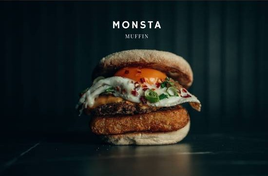 Chef x original muffin. 100% beef patty, fried egg, smoked macon, hash brown, american cheese, chef x signature sauce.